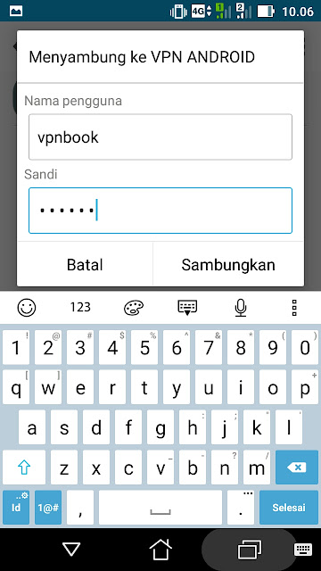 Jika sudah berhasil diaktifkan, maka akan muncul keterangan Terhubung atau muncul icon kunci dibagian atas layar smartphone Anda.