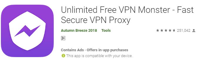 Sebagian aplikasi VPN membatasi penggunanya hingga sekian giga. Nah, Unlimited Free VPN Monster merupakan aplikasi VPN unlimited.