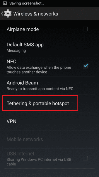 • Tap pada Tethering & Portable Hotspot kemudian menu akan terbuka, lalu pilih WLAN hotspot.