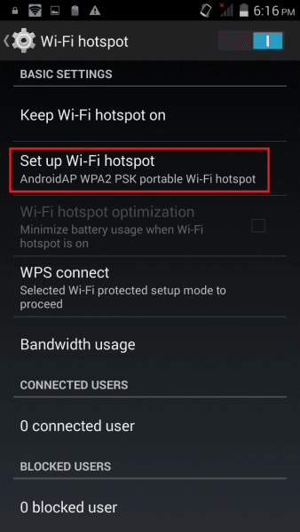 • Kemudian akan tampil menu Set Up WLAN hotspot atau Set UP Wi-Fi hotspot seperti gambar berikut ini.